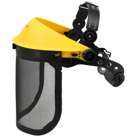 Mrežasti vizir je nepogrešljiv za gradbeništvo, vrtnarjenje in mehansko obdelavo materialov. Izdelan je iz goste, trpežne mreže in učinkovito ščiti oči in obraz pred delci v zraku, kot so trava in odpadki. Zgornji del vizirja, izdelan iz trpežne plastike, dodatno ščiti čelo pred padajočimi vejami in odpadki.