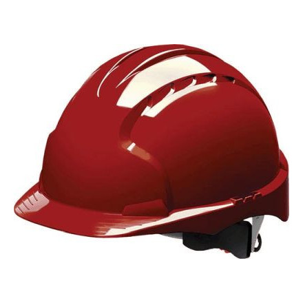Industrijska varnostna čelada EVO3 v rdeči barvi nudi vrhunsko zaščito in udobje z vzdržljivo HDPE školjko in prilagodljivim pasom.