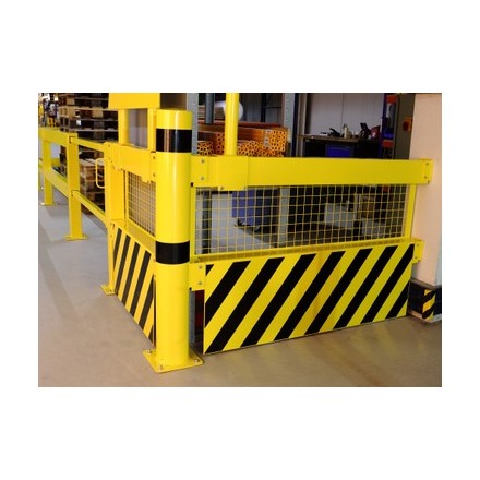 - 1 x končni stebriček, jeklen, rumene RAL 1023 barve s črnimi trakovi, 1200 mm