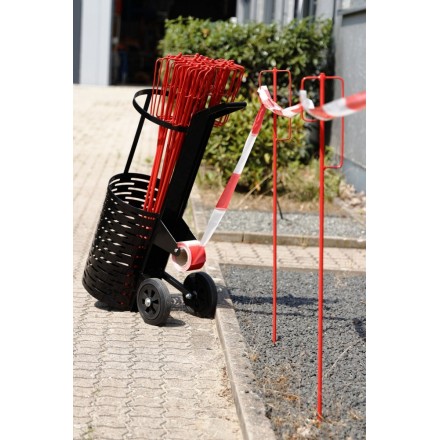 Rdeč kovinski stebriček z dvojno zanko, je primeren za hitro in enostavno zapiranje in označevanje velikih površin. Višina stebrička je 1200 mm.