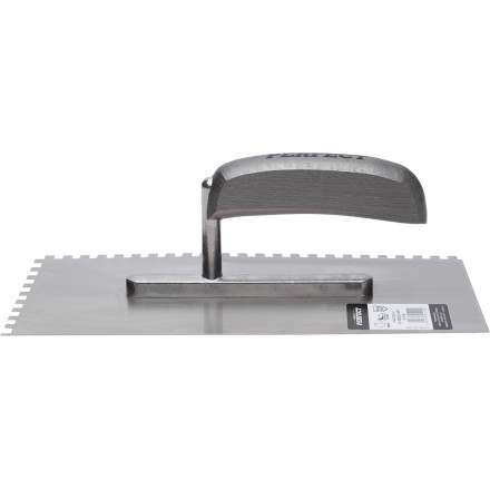 Nerjaveča gladilka 28 x 13 mm z 6 x 6 zobmi za profesionalno obdelavo površin. Udoben bimaterialen ročaj.